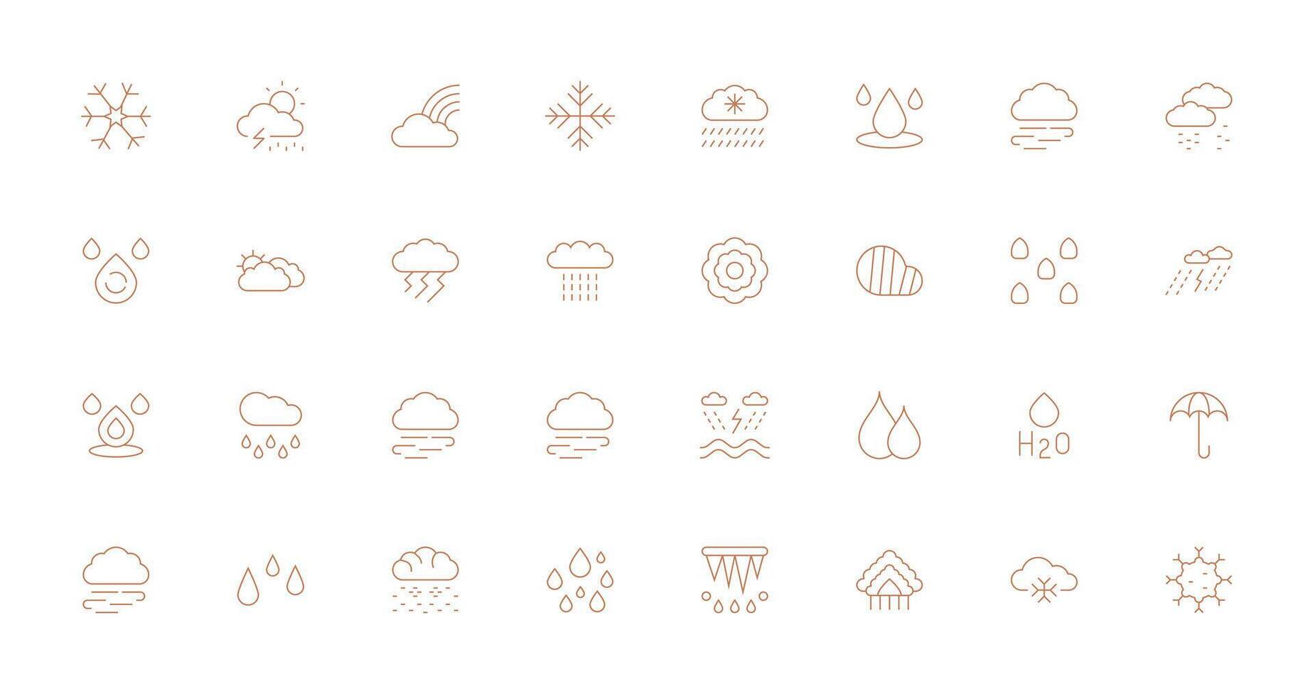 32 Icons for Precipitation in Thin Line Format Responsive Icon Set for Flexible Layouts vector