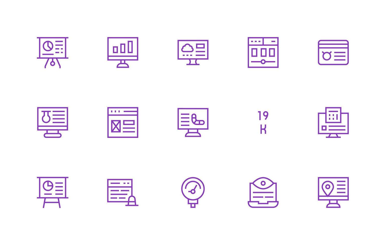 Regular Line Icons from Data Display Set with 15 Vectors Flexible Icon System for Web Interfaces