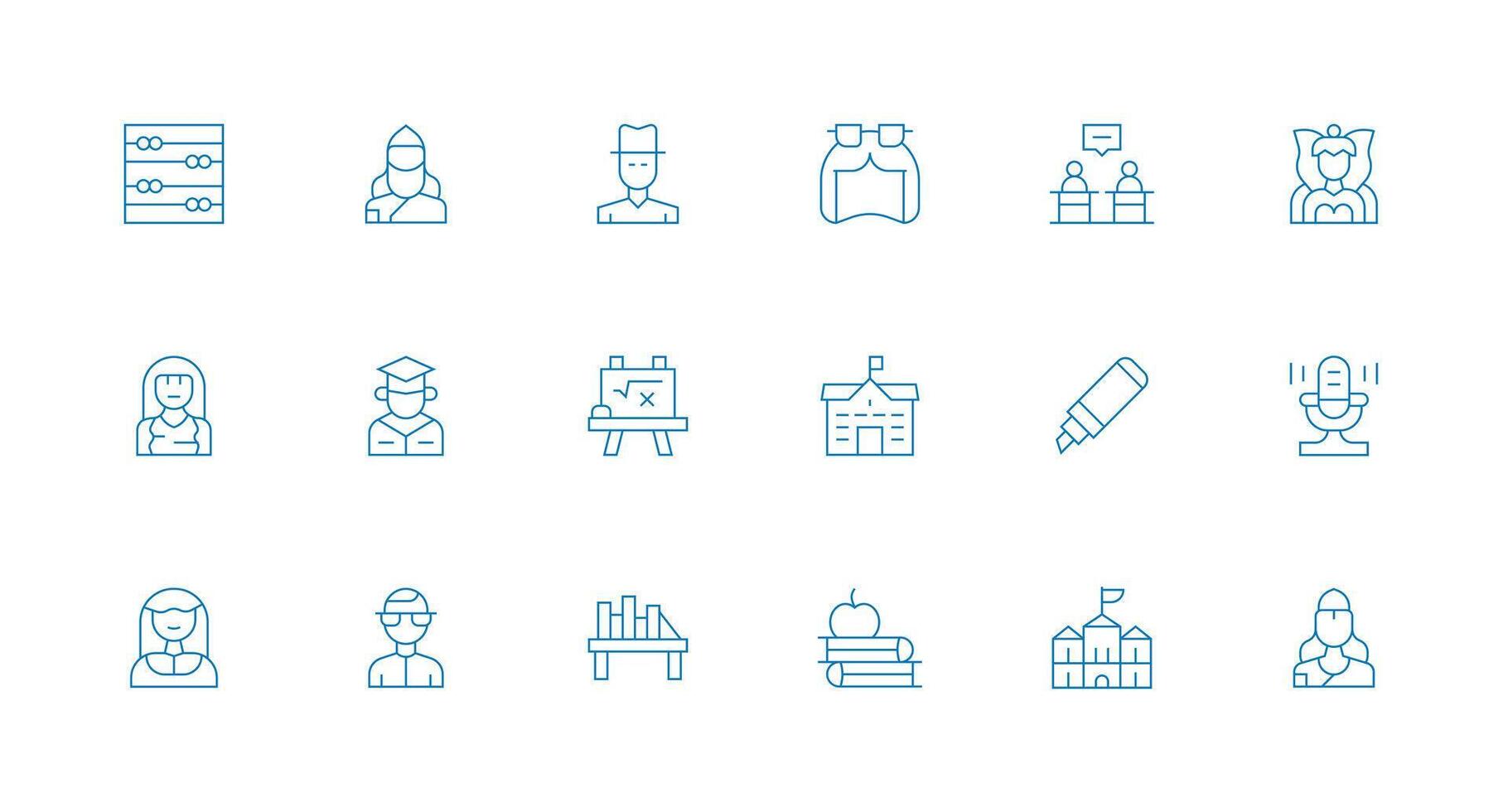 Teacher Set with 18 Minimal Line Icons Interface Icon Collection for Daily Projects Free Vector