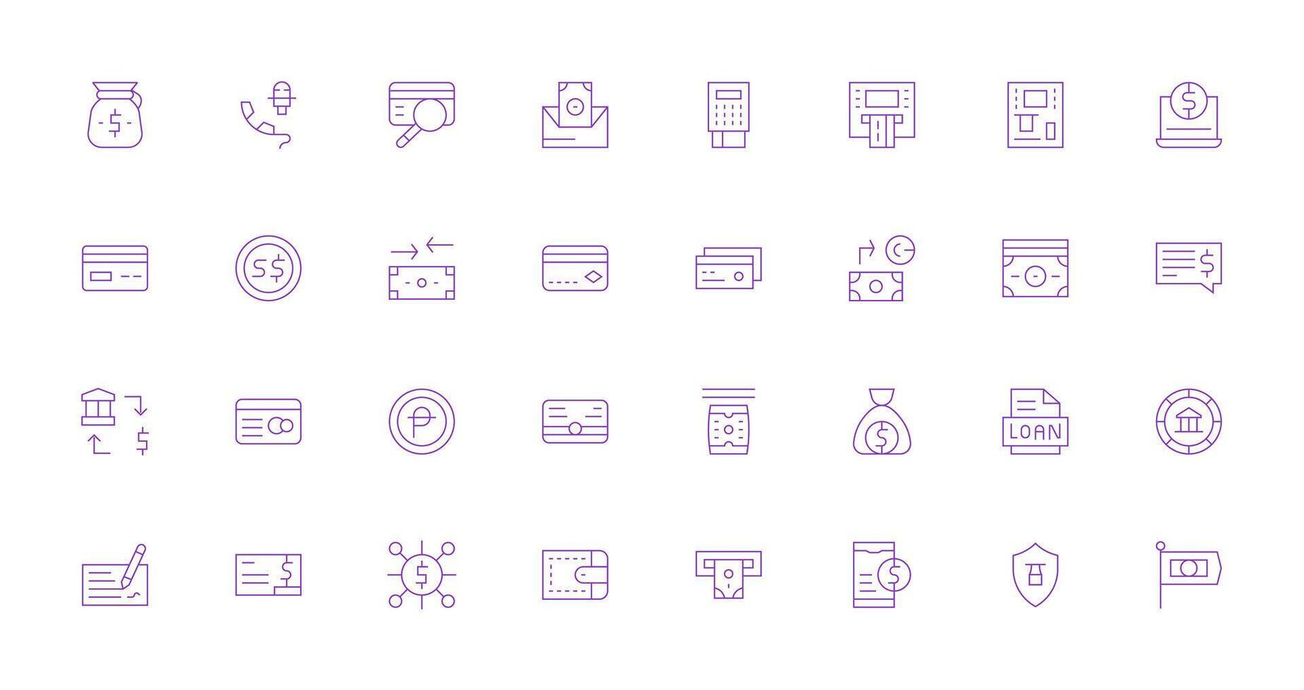 32 Icons for Banking in Thin Line Format Web Icon Collection vector