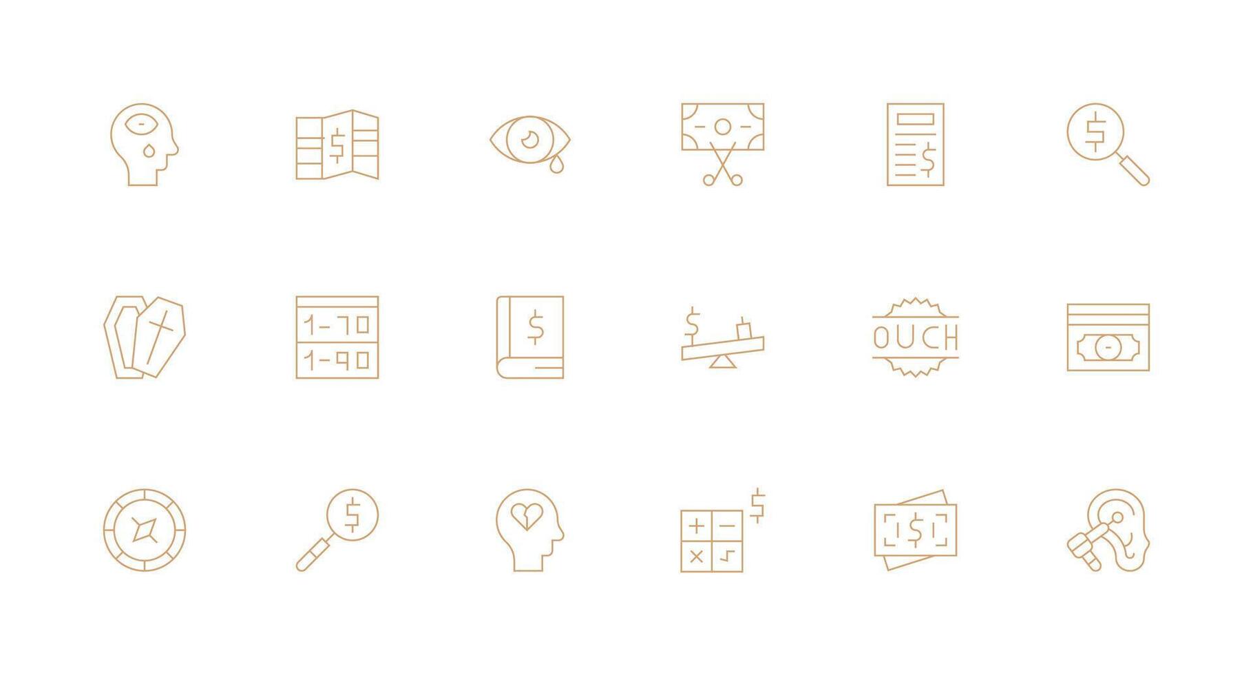 Loss Design Icons featuring 18 in Minimal Line Style Clean Icon Collection for Web Use Free Vector