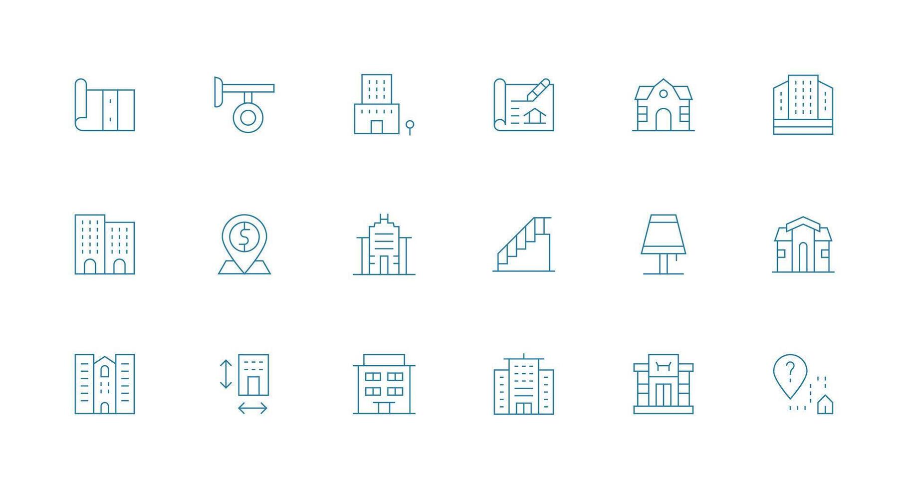 18 Minimal Line Icons for Property Graphics Customizable Icon Series for Mobile Screens vector