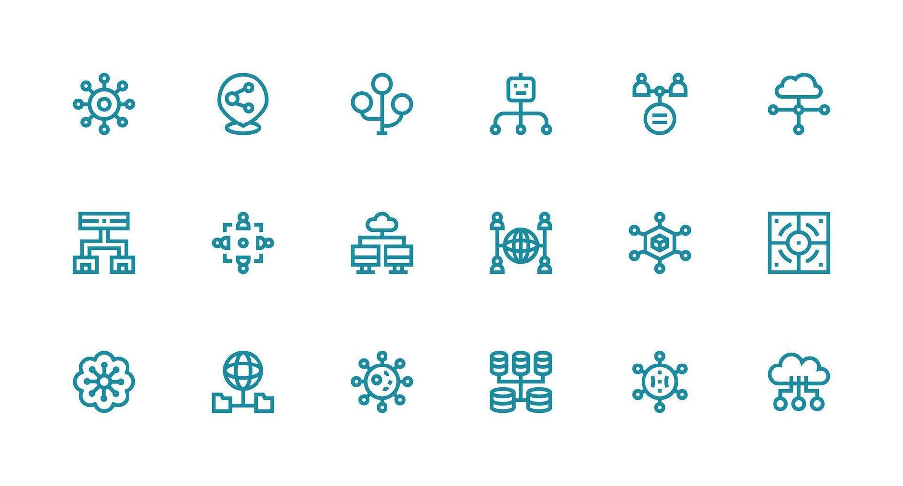 Distributed Design Icons featuring 18 in Strong Stroke Line Style Functional Icon Series Free Vector