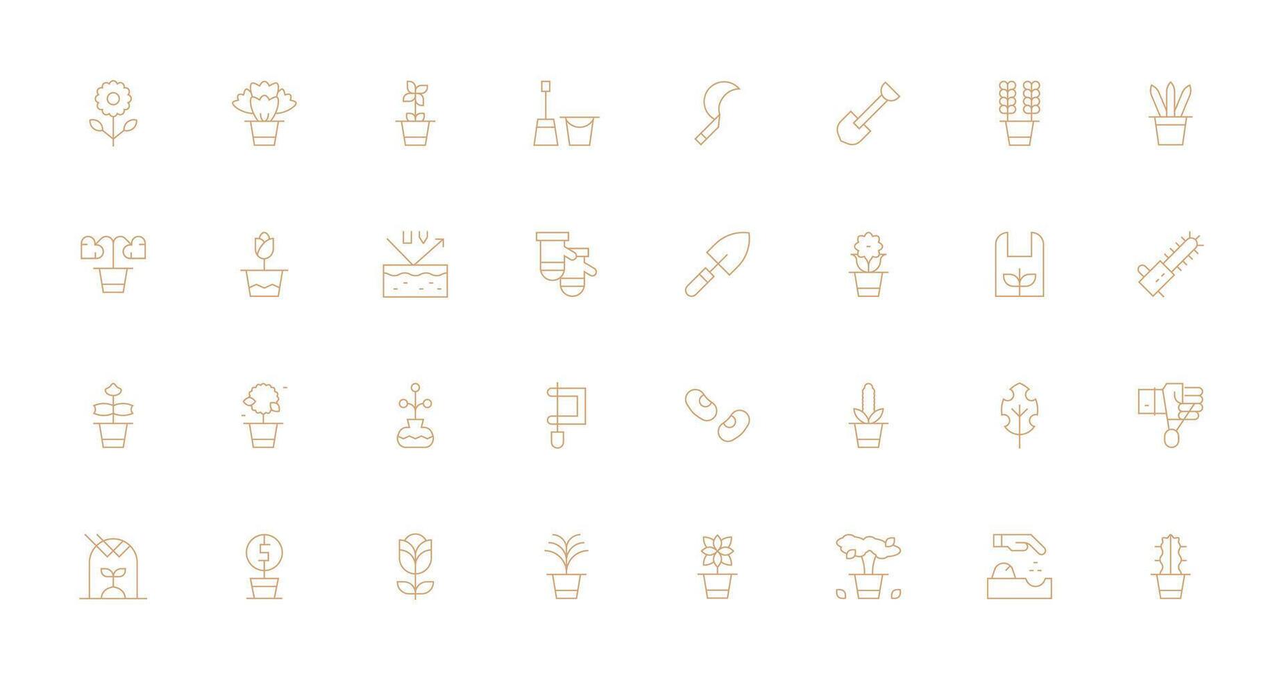 Gardening Icon Set with 32 Thin Line Graphics Essential Icons for Rapid UI Building Free Vector