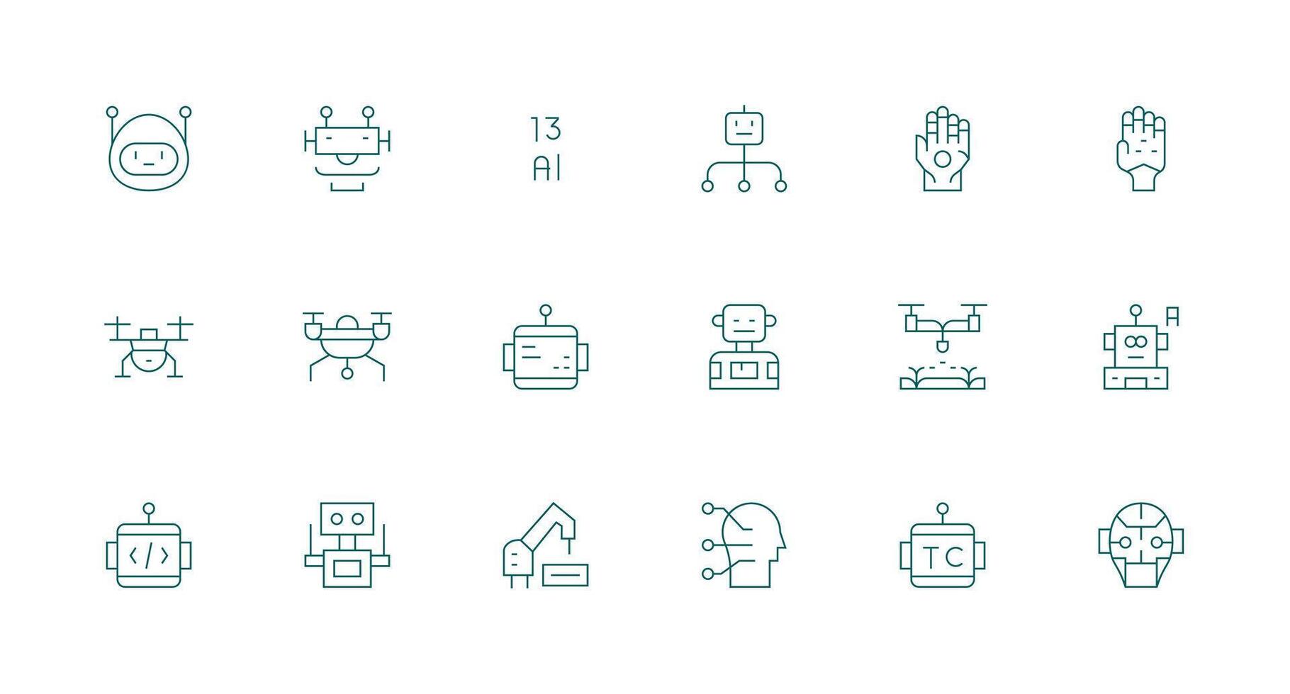 Robotics Icon Collection with 18 Minimal Line Designs Digital Icon Collection Free Vector