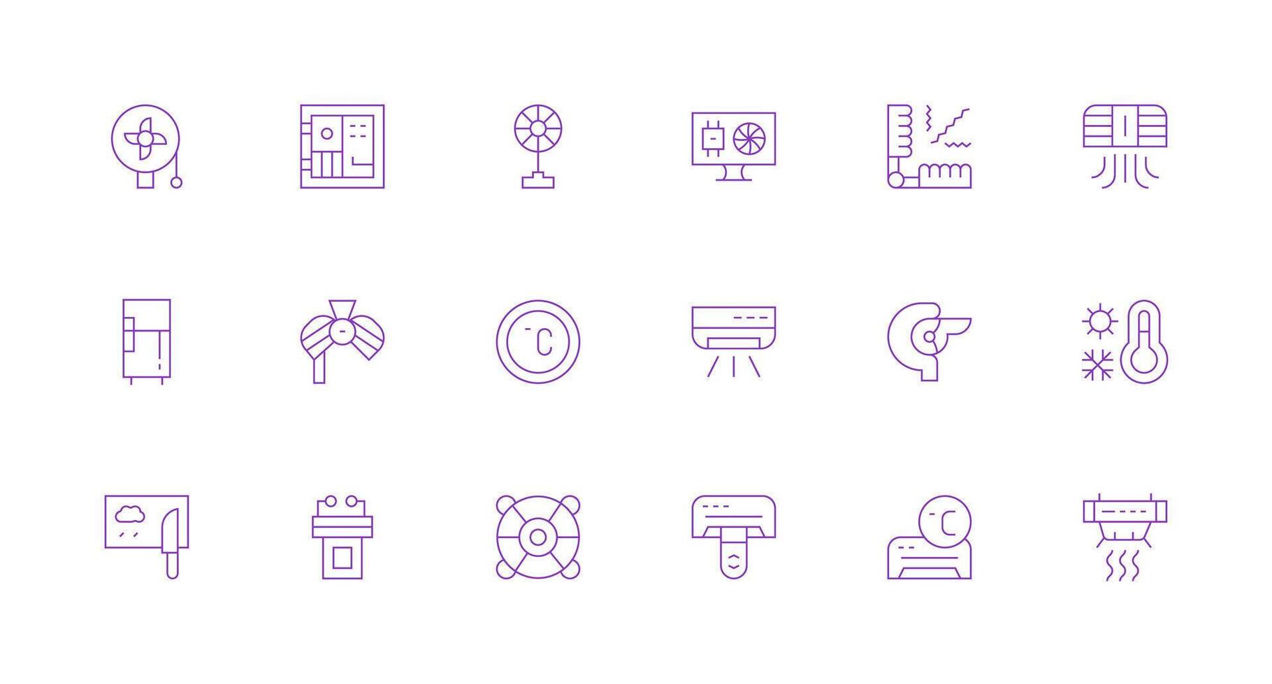 Cooling featuring 18 Icons in Minimal Line Design Reusable Icon Set Free Vector