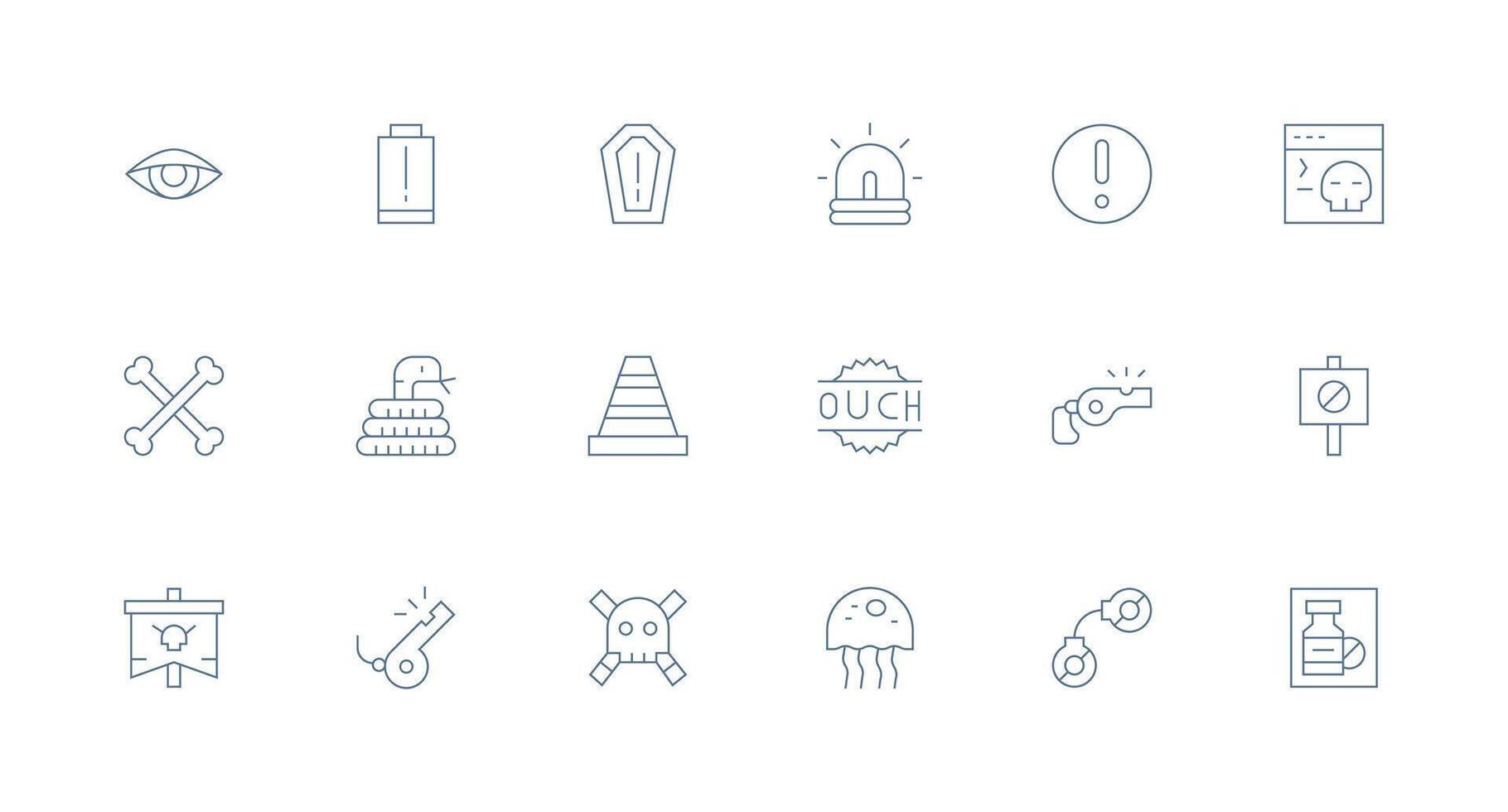 Caution Design Icons featuring 18 in Minimal Line Style Detailed Icon Collection for Design Systems Free Vector