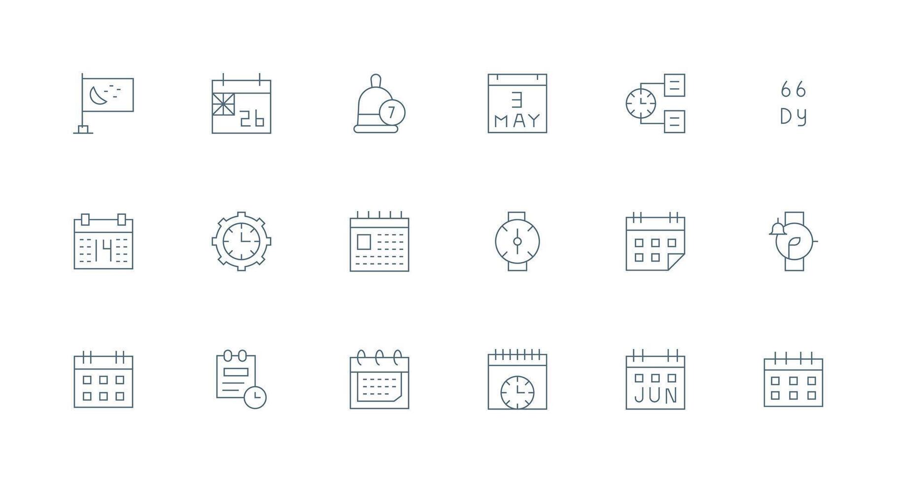 Calendar Icon Set with 18 Minimal Line Graphics Well-Structured Icons for Creative Use Free Vector