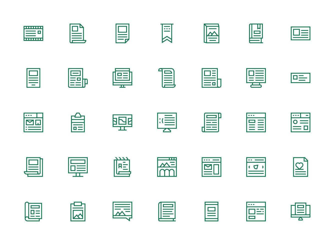 Article Icon Set with 35 Regular Clean Line Graphics Outline Icon Pack vector