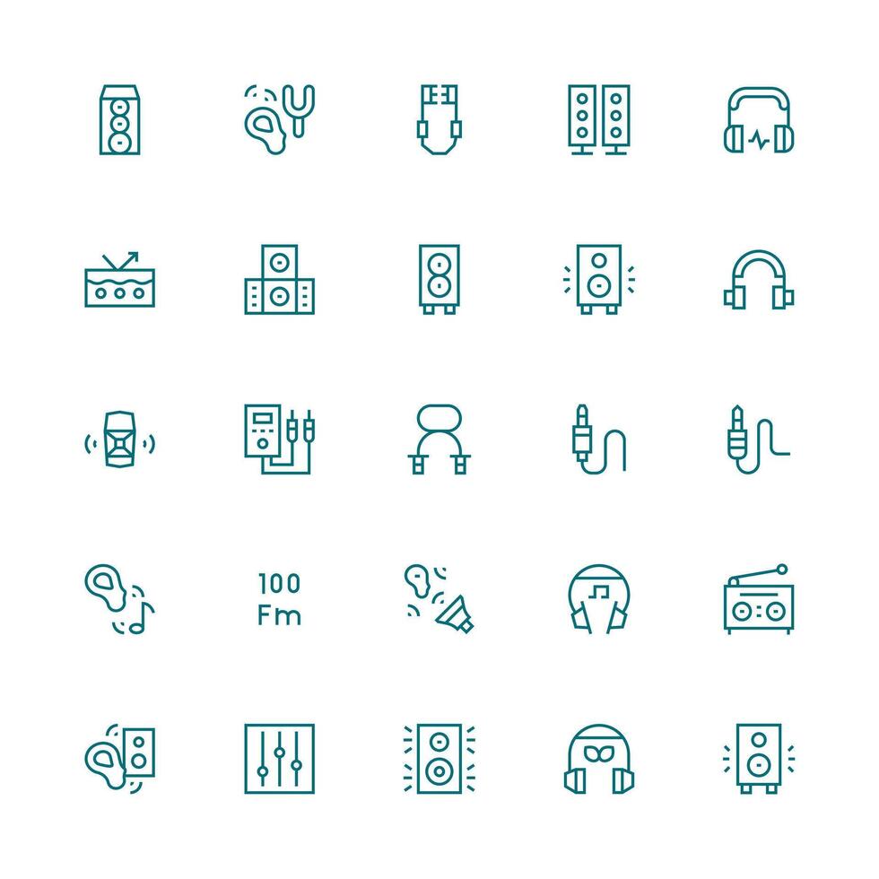 Stereo Icon Set with 25 Medium Stroke Outline Graphics Multi-Style Icons for Creative Projects Free Vector
