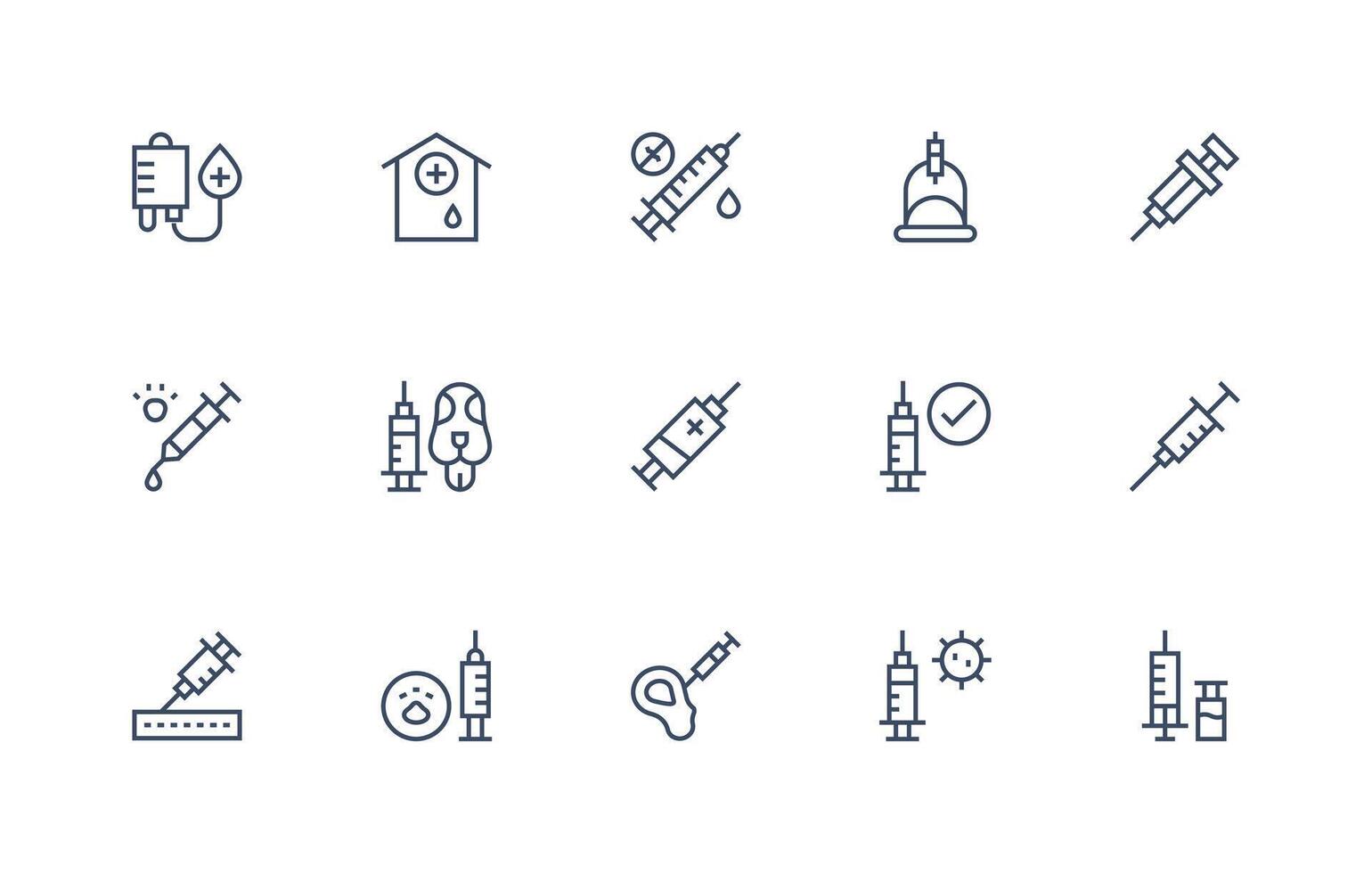 Vaccination Icon Set with 15 Regular Line Graphics Digital Product Icons for Fast Delivery vector
