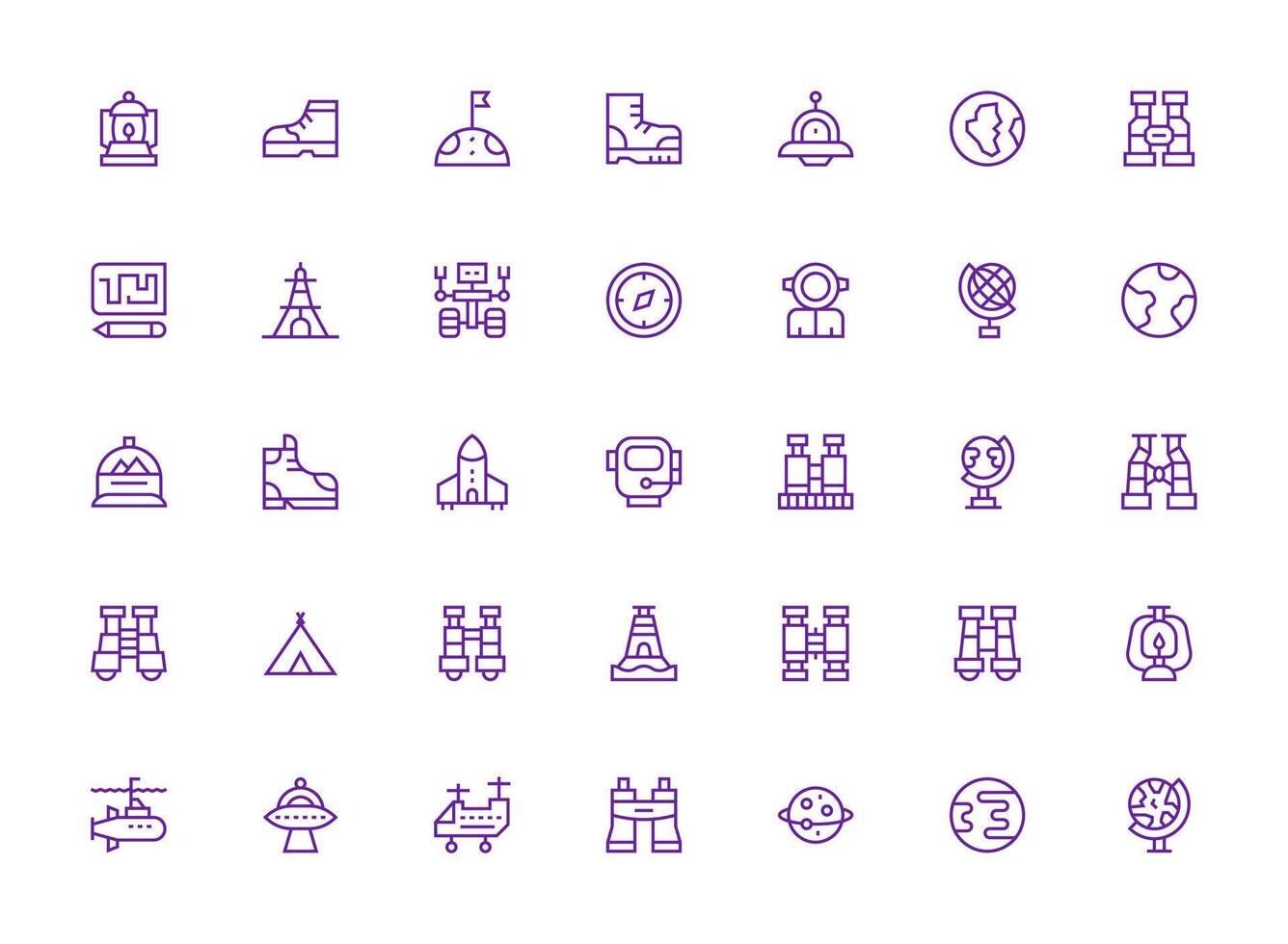 Regular Clean Line Icons from Exploration Set with 35 Vectors Scalable Icons for All Themes Free Vector