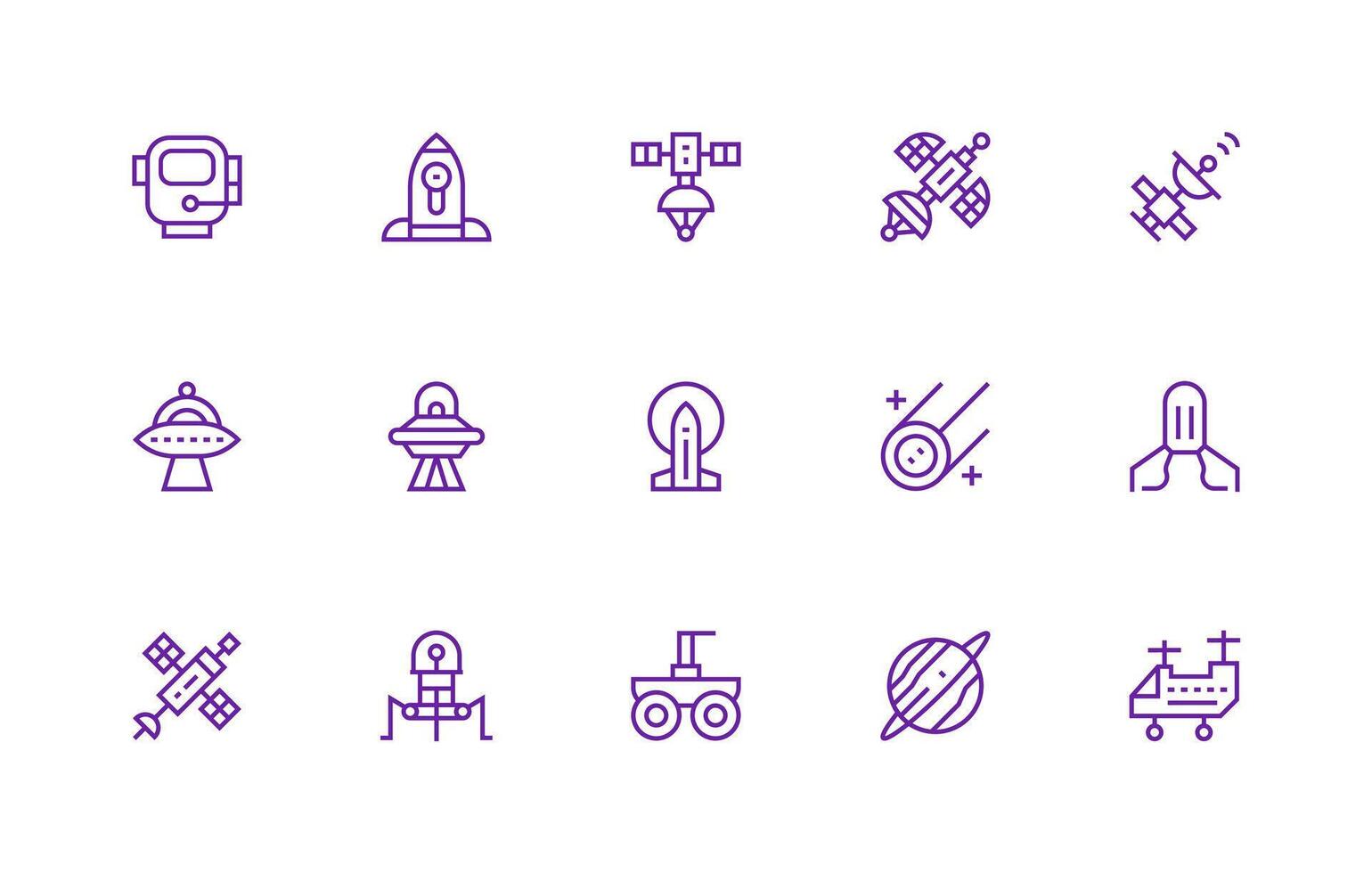 Spacecraft Design Icons featuring 15 in Regular Line Style Icon Collection Set vector