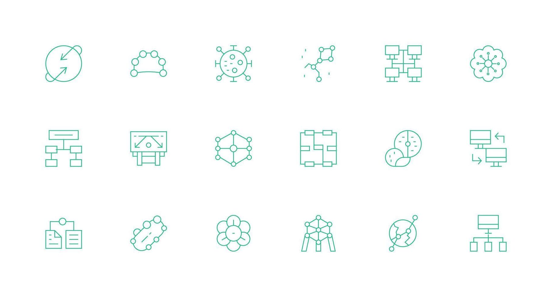 Data Flow featuring 18 Icons in Minimal Line Design Basic Icon Series Free Vector