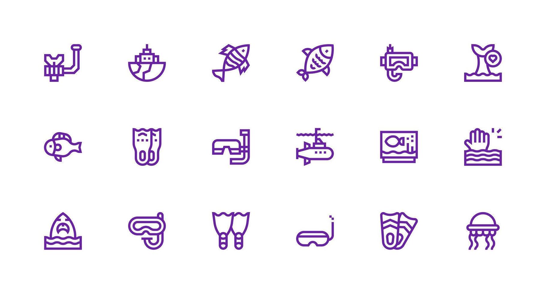 Strong Stroke Line Style Underwater Icons with 18 Vectors Sharp Icons for Presentations