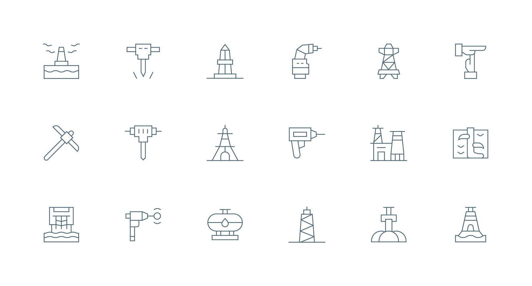 Drilling Icon Set with 18 Minimal Line Graphics Multi-Purpose Icon Pack for Templates Free Vector
