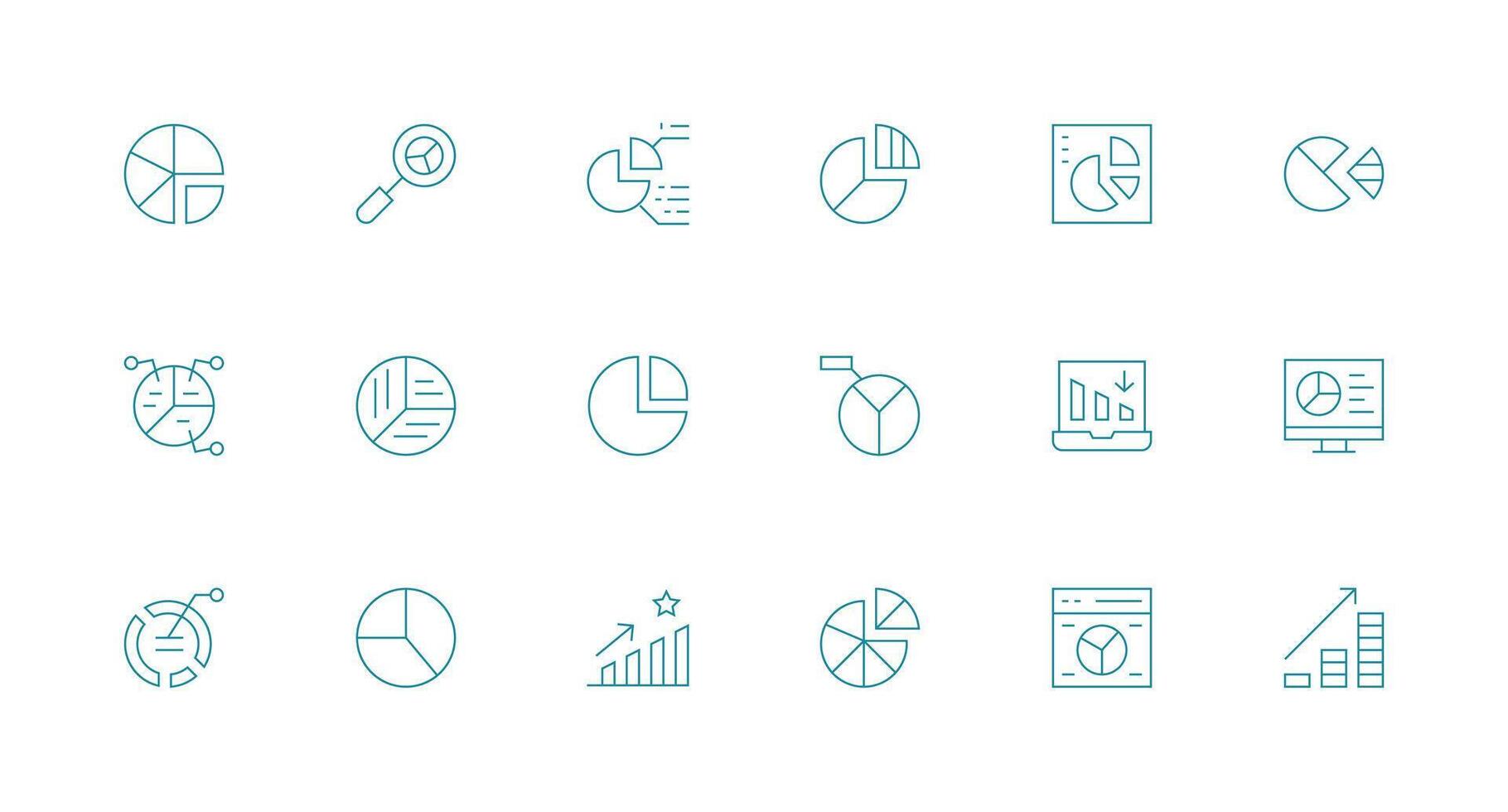 Minimal Line Style Market Share Icons with 18 Vectors Web and App Icon Pack Collection