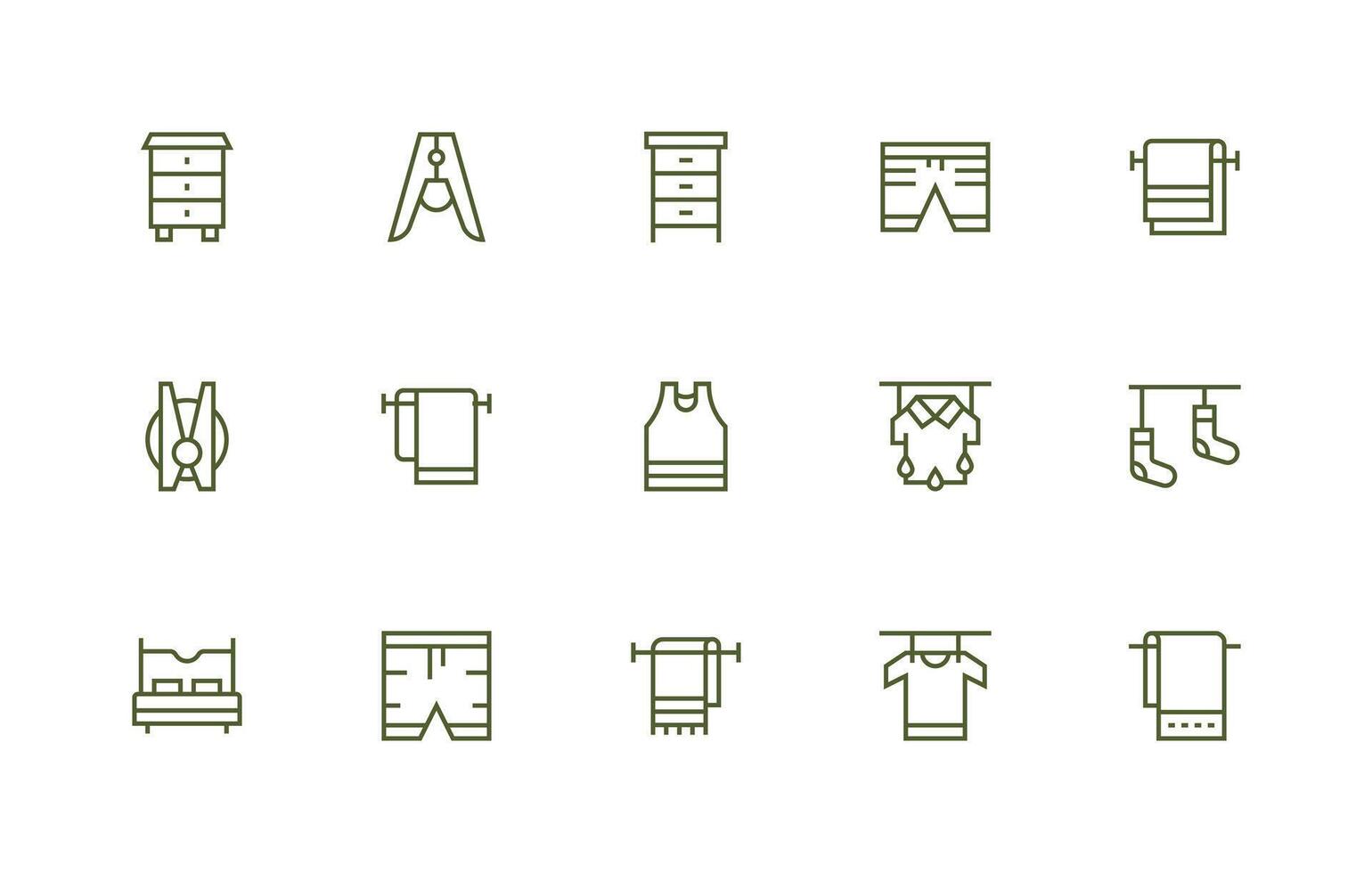 Linen Icon Set with 15 Regular Line Graphics Quick Access Icons for UI Development vector