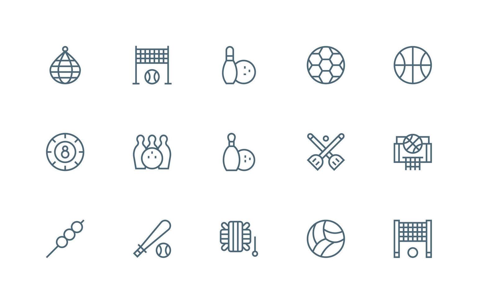 15 Regular Line Style Icons from Ball Collection Simple Icons for Interface and Wireframes vector