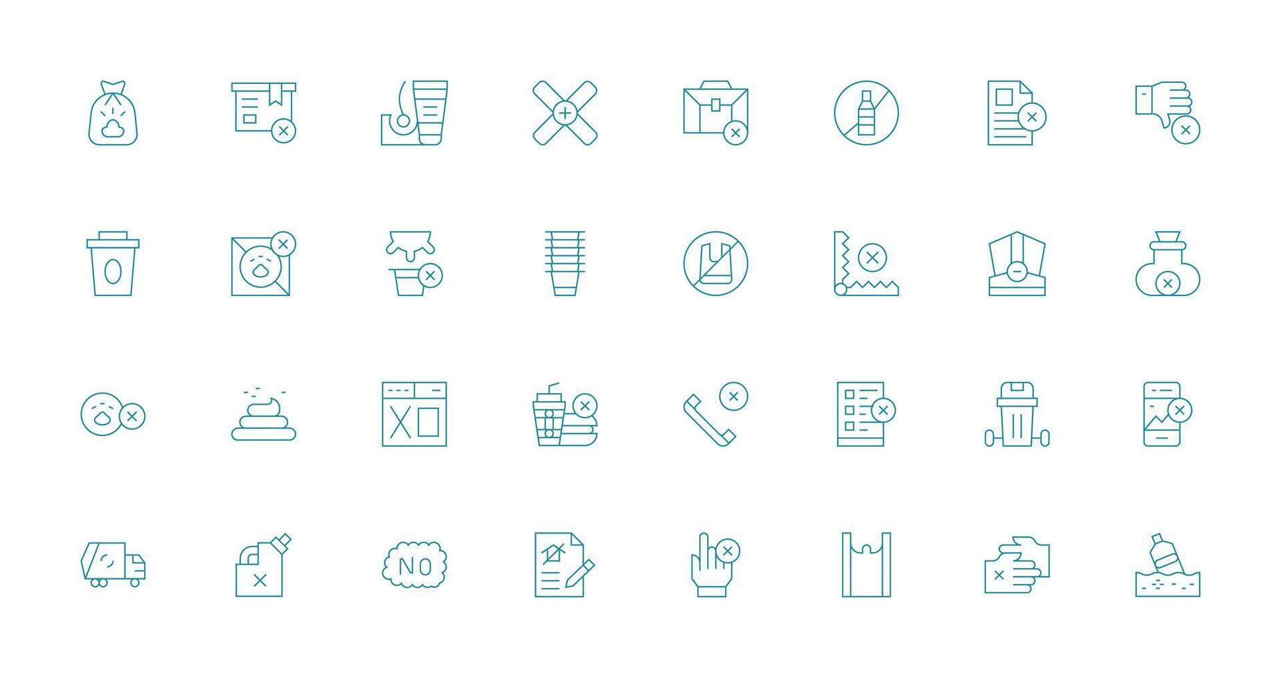 Refuse Visual Pack containing 32 Thin Line Icons Dashboard Icon Series Free Vector