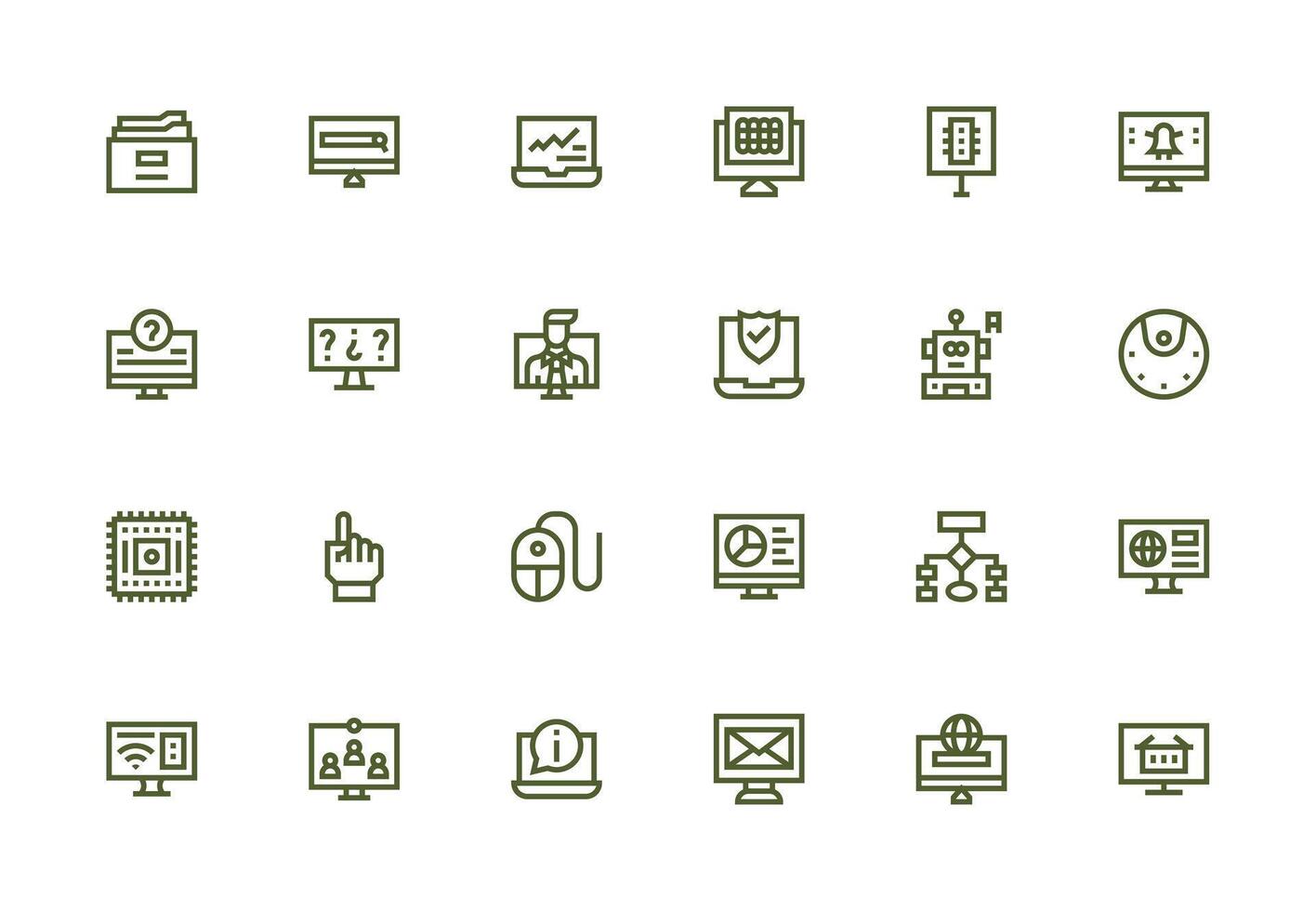 Computer Icon Collection with 24 Thick Line Line Designs Minimal Icon Set for Interface Projects vector