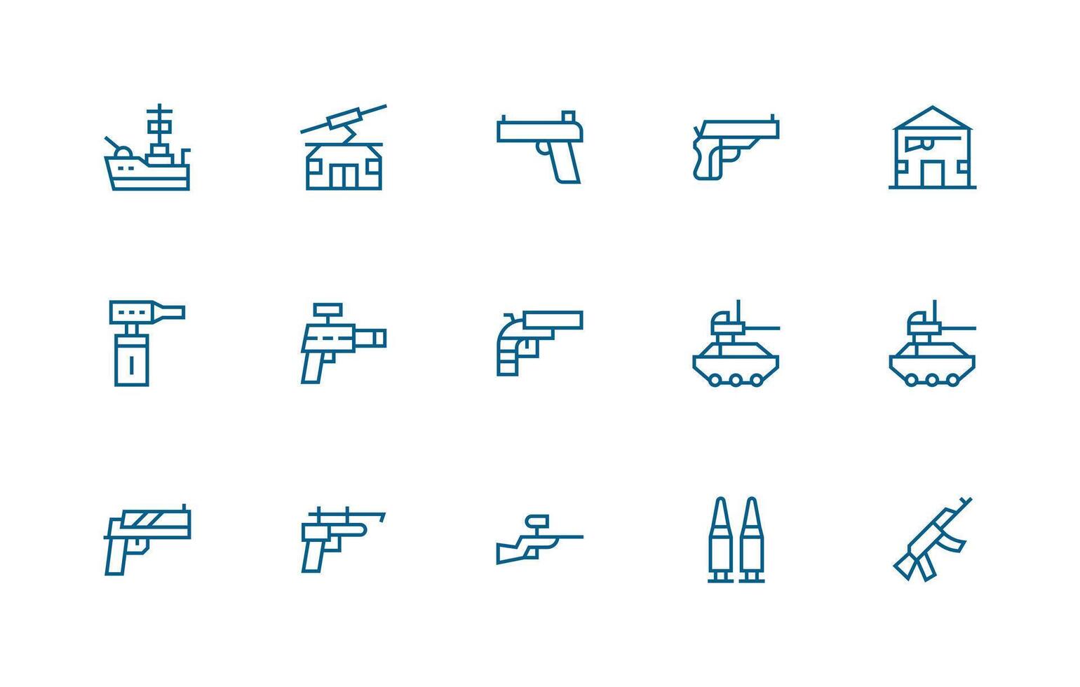 Gun Design Icons featuring 15 in Regular Line Style Flexible Icon System for Web Interfaces vector