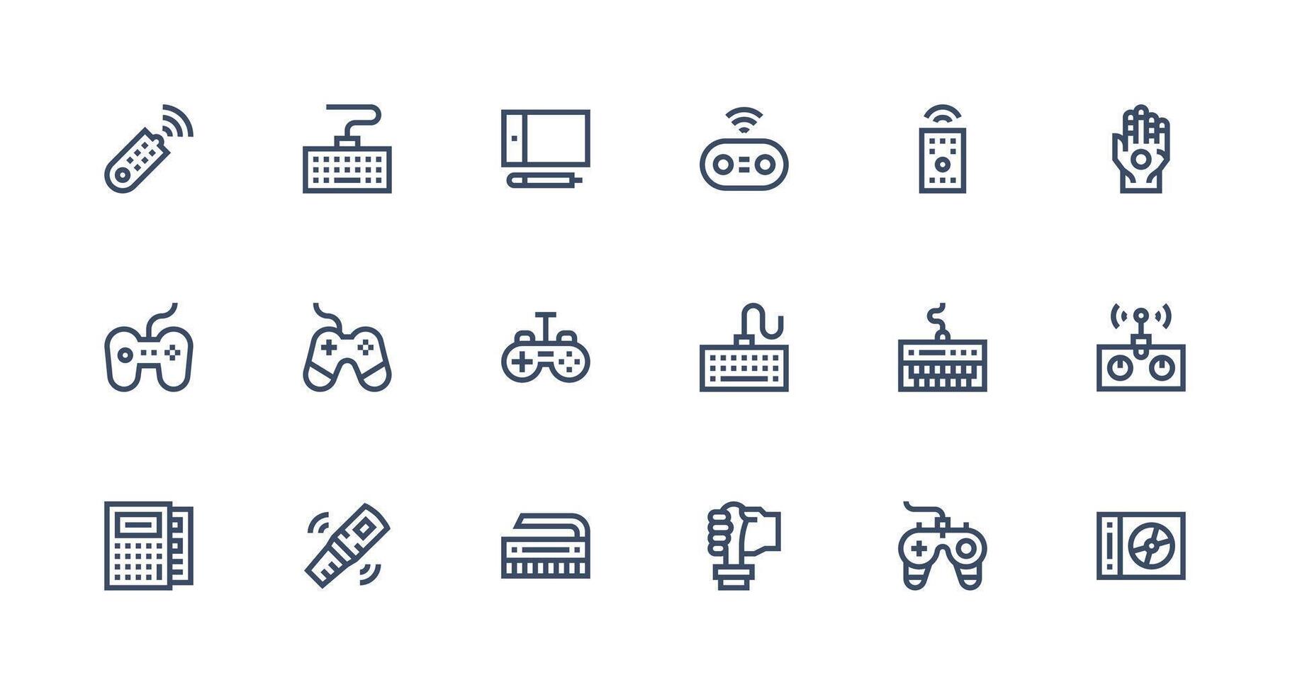 Input Device Icon Set with 18 Strong Stroke Line Graphics Glyph Icon Series vector