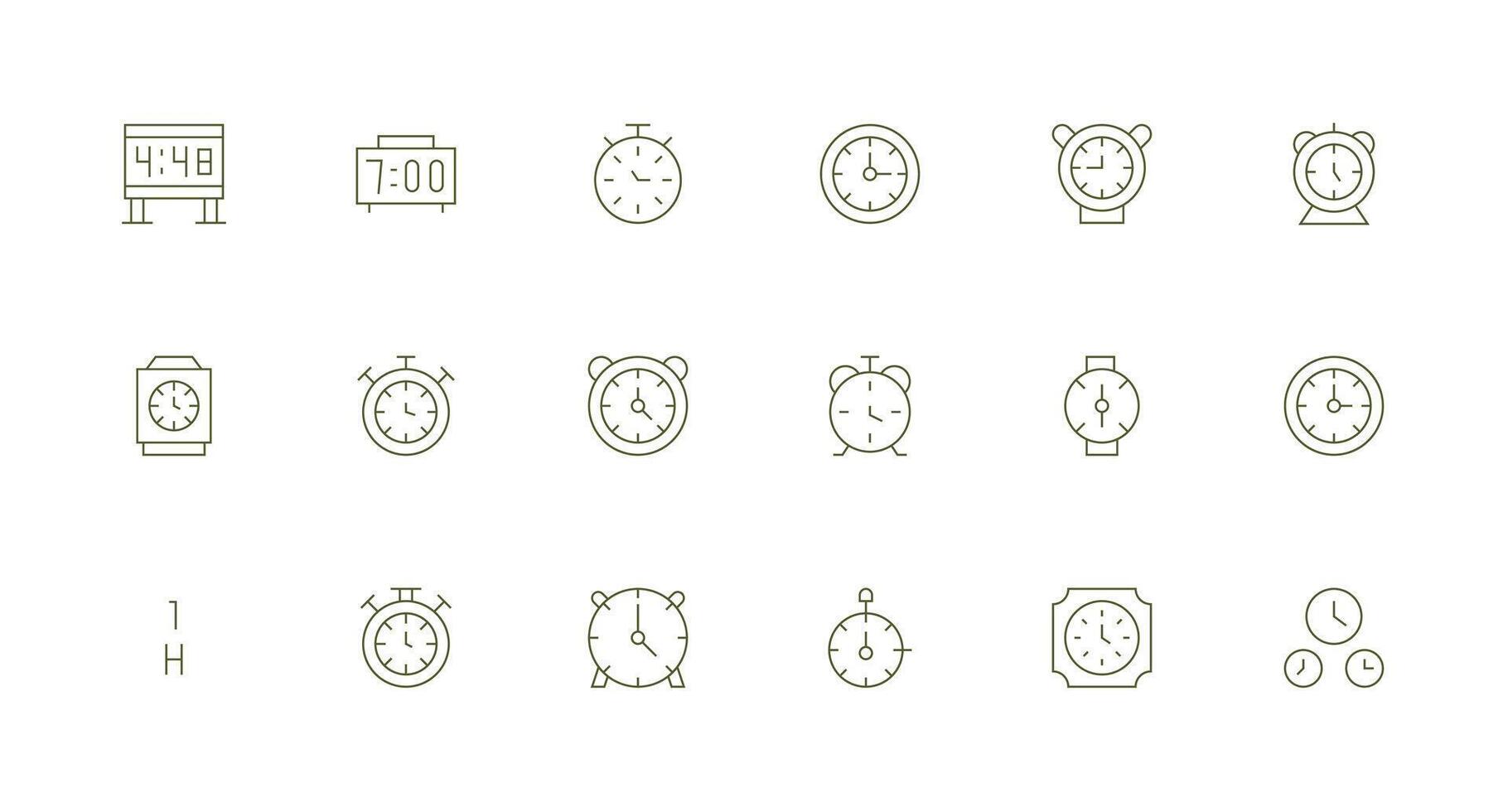 Digital Clock Set with 18 Minimal Line Icons Multi-Purpose Icon Pack for Templates Free Vector