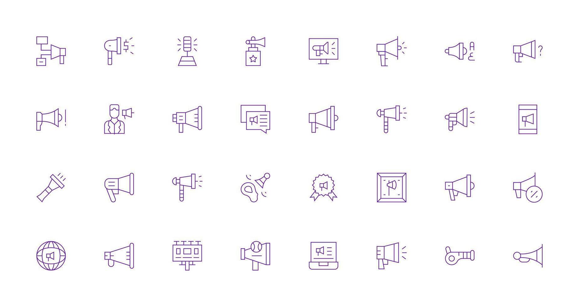 32 Thin Line Vectors for Megaphone Theme Minimal Icon Set for Interface Projects