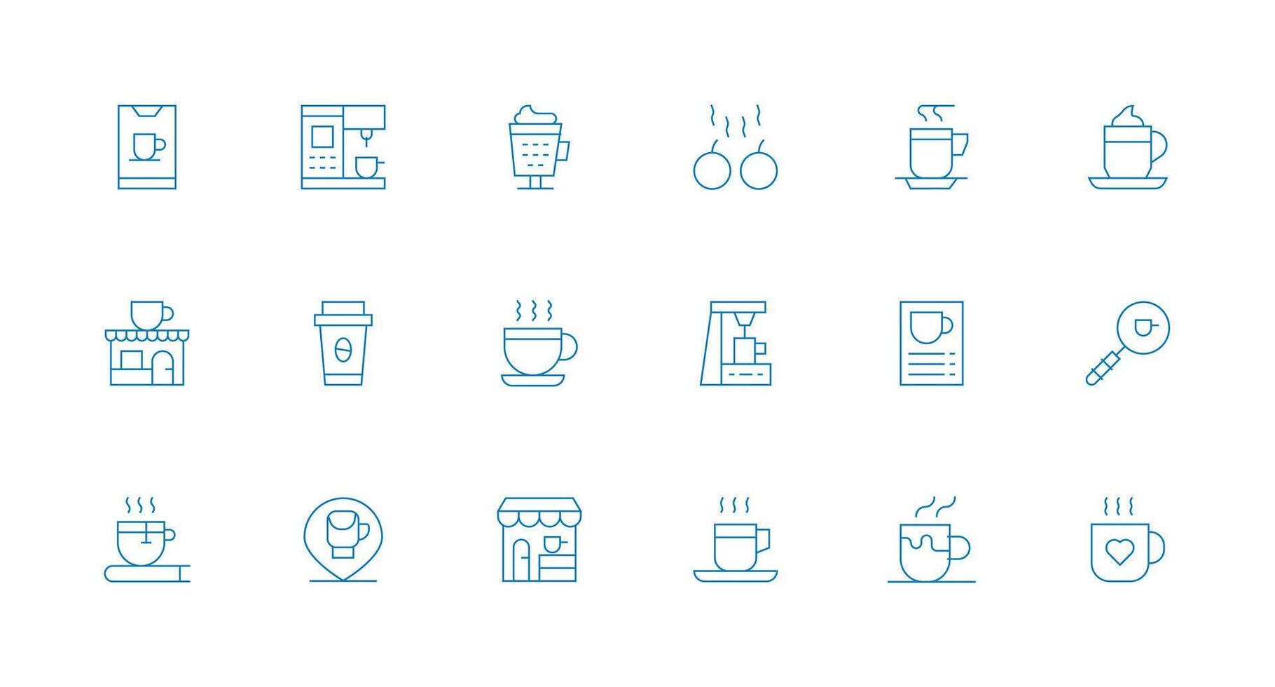 Espresso Icon Set with 18 Minimal Line Graphics Style Icon Set Free Vector