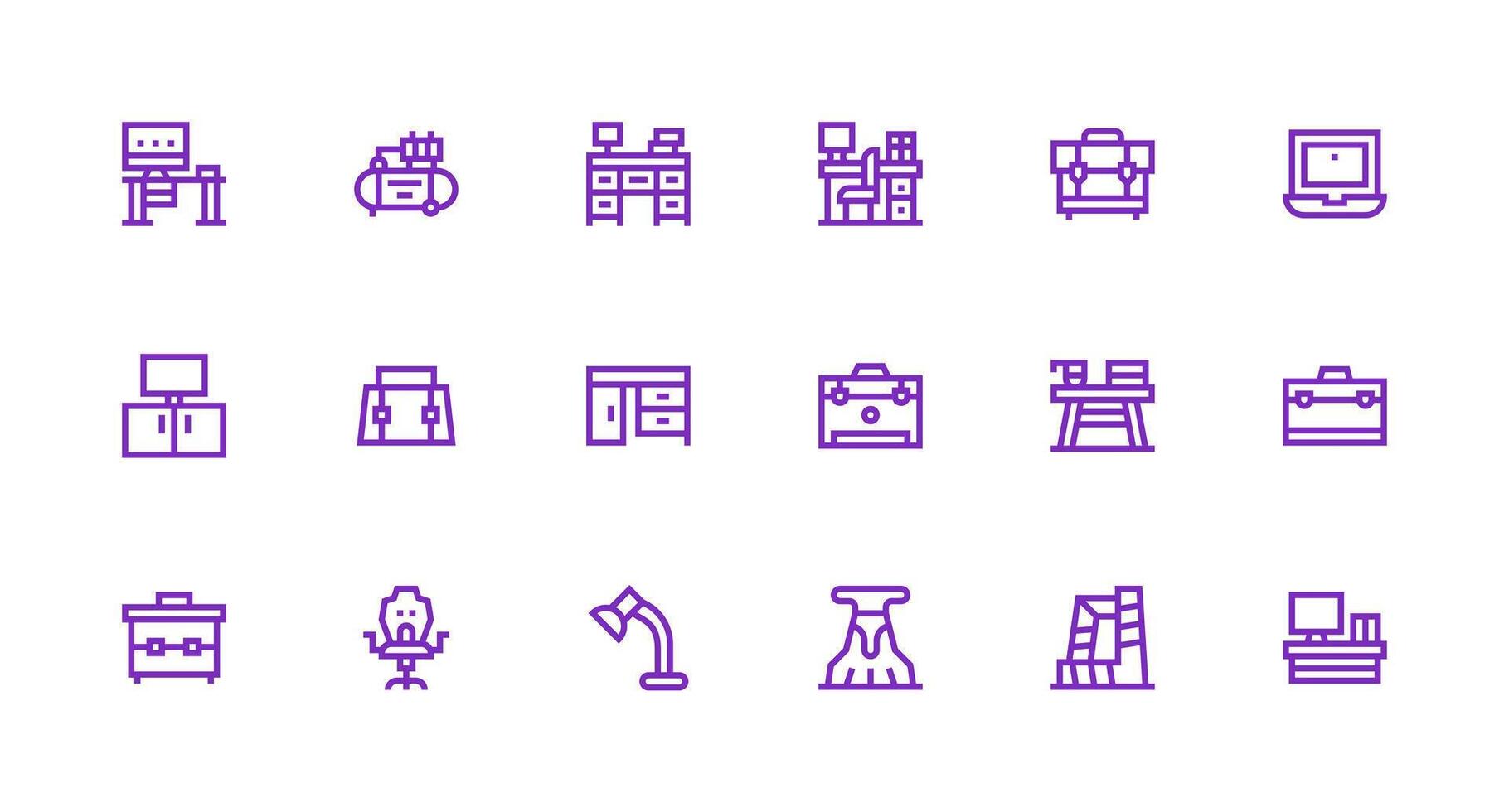 Workstation Icon Set with 18 Strong Stroke Line Graphics Neat Icon Set Free Vector