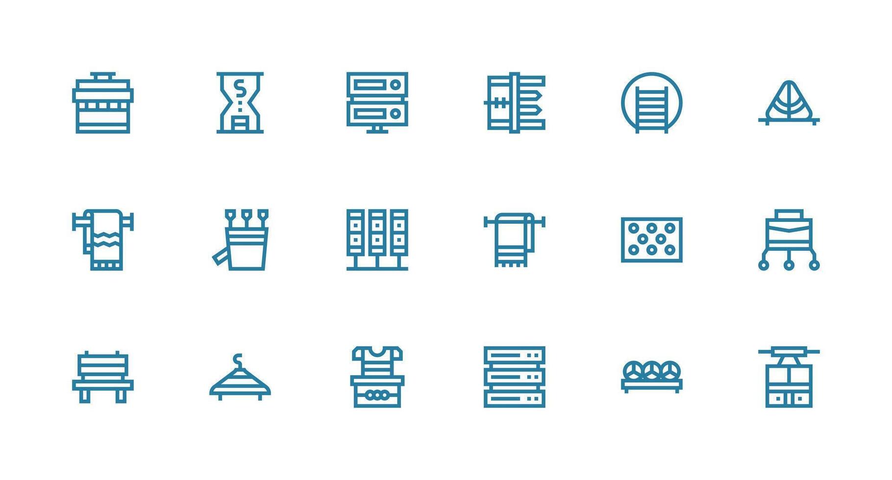 Rack Icon Collection with 18 Strong Stroke Line Designs Minimal Icon Set for Interface Projects Free Vector