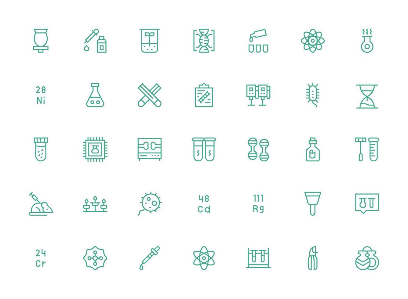 Laboratory Icon Set with 35 Regular Clean Line Graphics Well-Structured Icons for Creative Use Free Vector