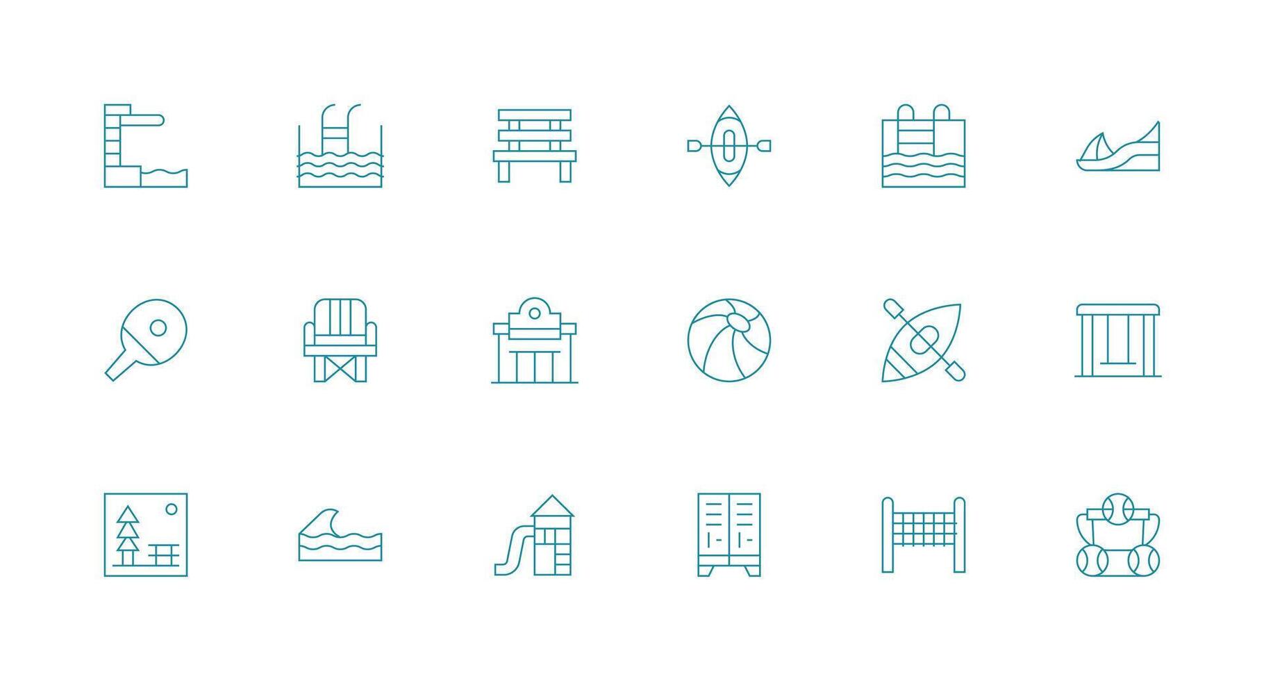 Recreation Set with 18 Minimal Line Icons High-Resolution Icons for Any Platform vector