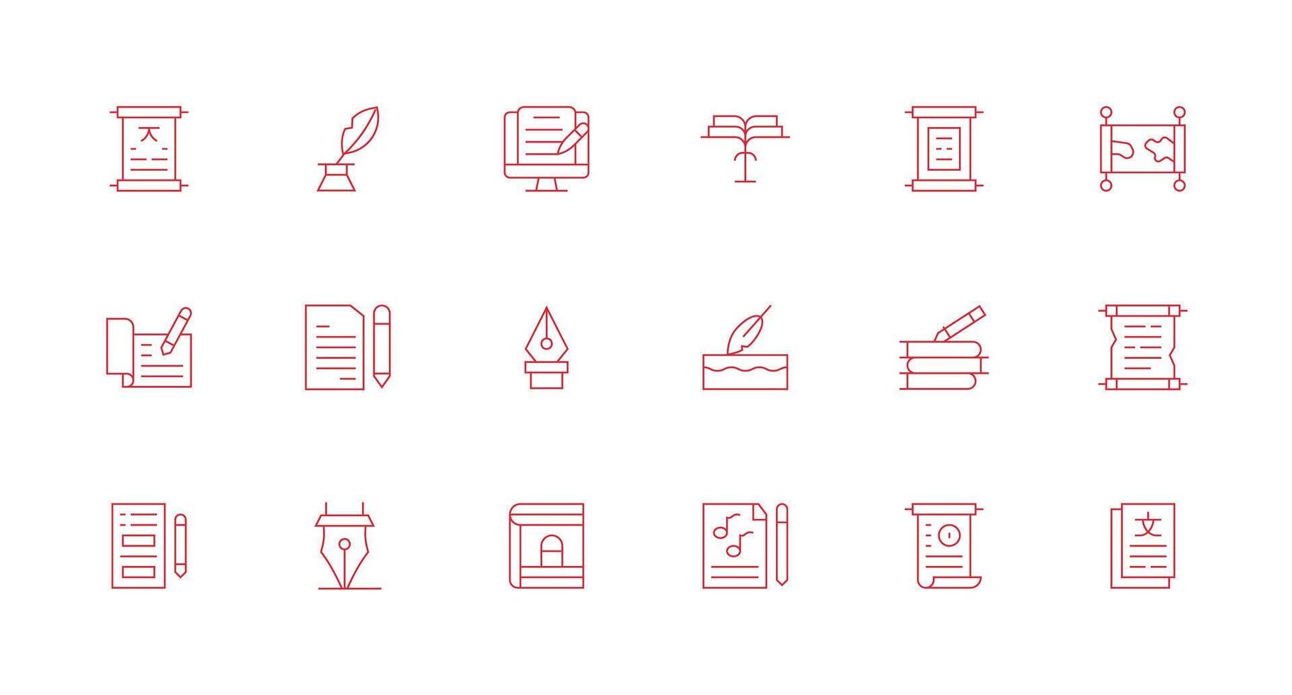 Manuscript Design Icons featuring 18 in Minimal Line Style Web and App Icon Pack Collection Free Vector