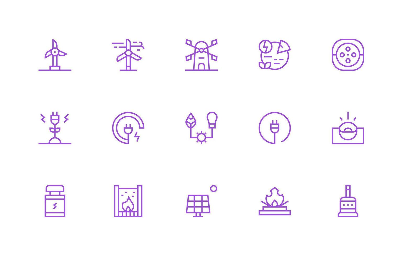Energy Source Design Icons featuring 15 in Regular Line Style Dashboard Icon Series vector