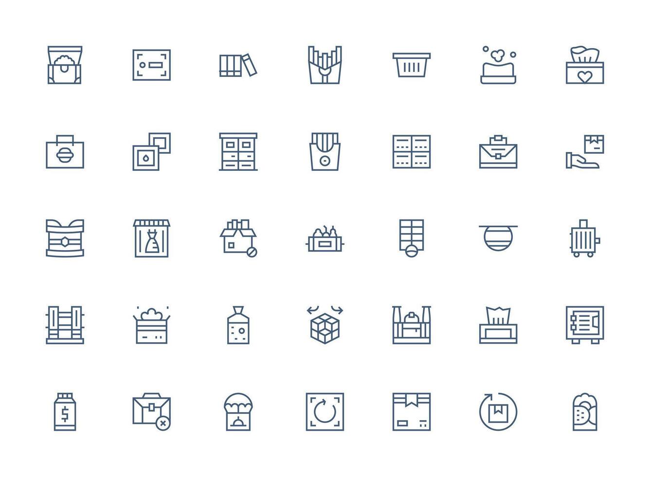 Box Visual Pack containing 35 Regular Clean Line Icons Simple Icons for Interface and Wireframes vector