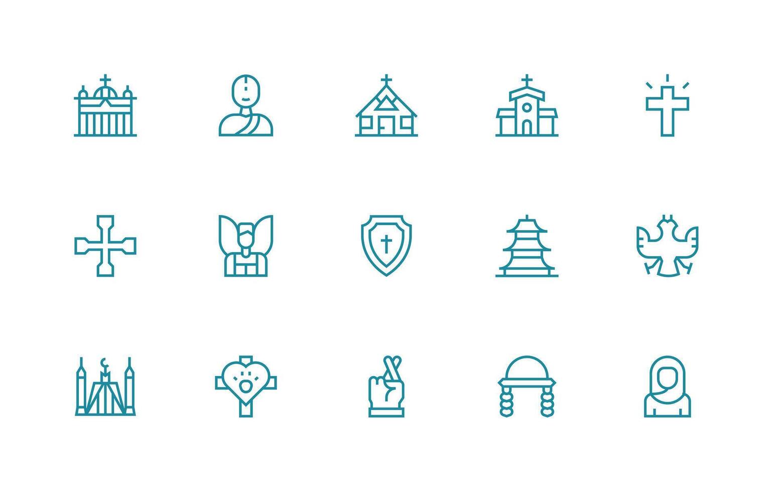 Faith featuring 15 Icons in Regular Line Design Responsive Icon Set for Flexible Layouts vector