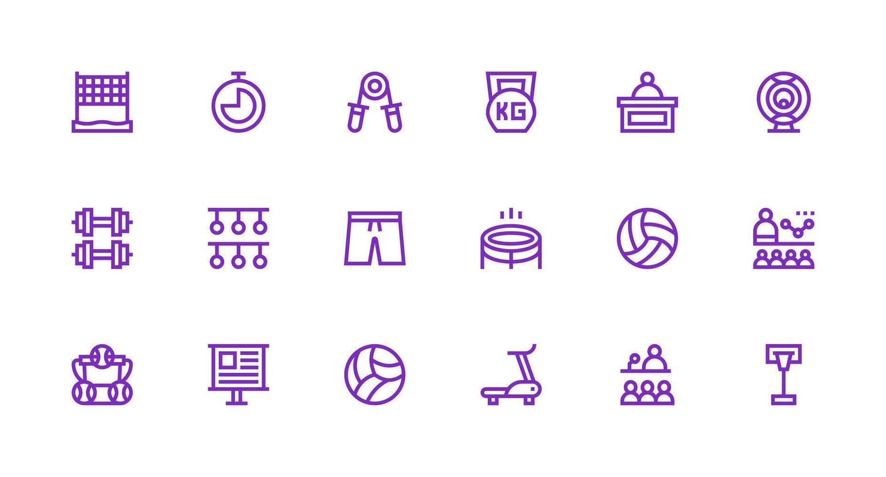 Training Design Icons featuring 18 in Strong Stroke Line Style Web Icon Collection Free Vector