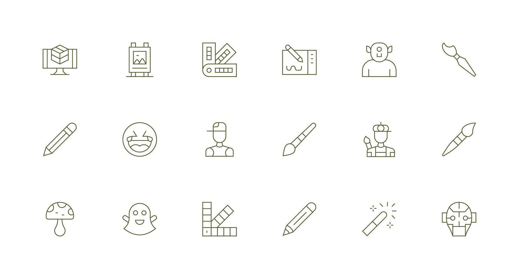 Digital Art Icon Set with 18 Minimal Line Graphics Smart Icon Collection Free Vector