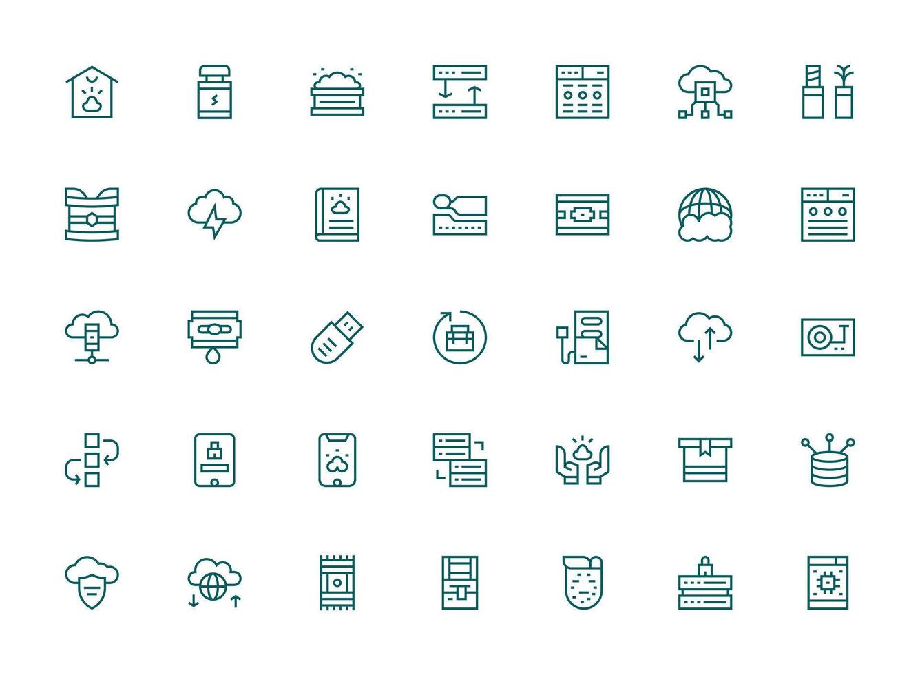Regular Clean Line Style Backup Icons with 35 Vectors Pixel Perfect Icons for Modern Apps Free Vector