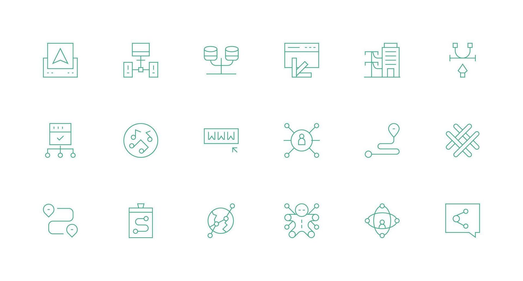 Link Design Icons featuring 18 in Minimal Line Style Fully Editable Icon Set for Web vector