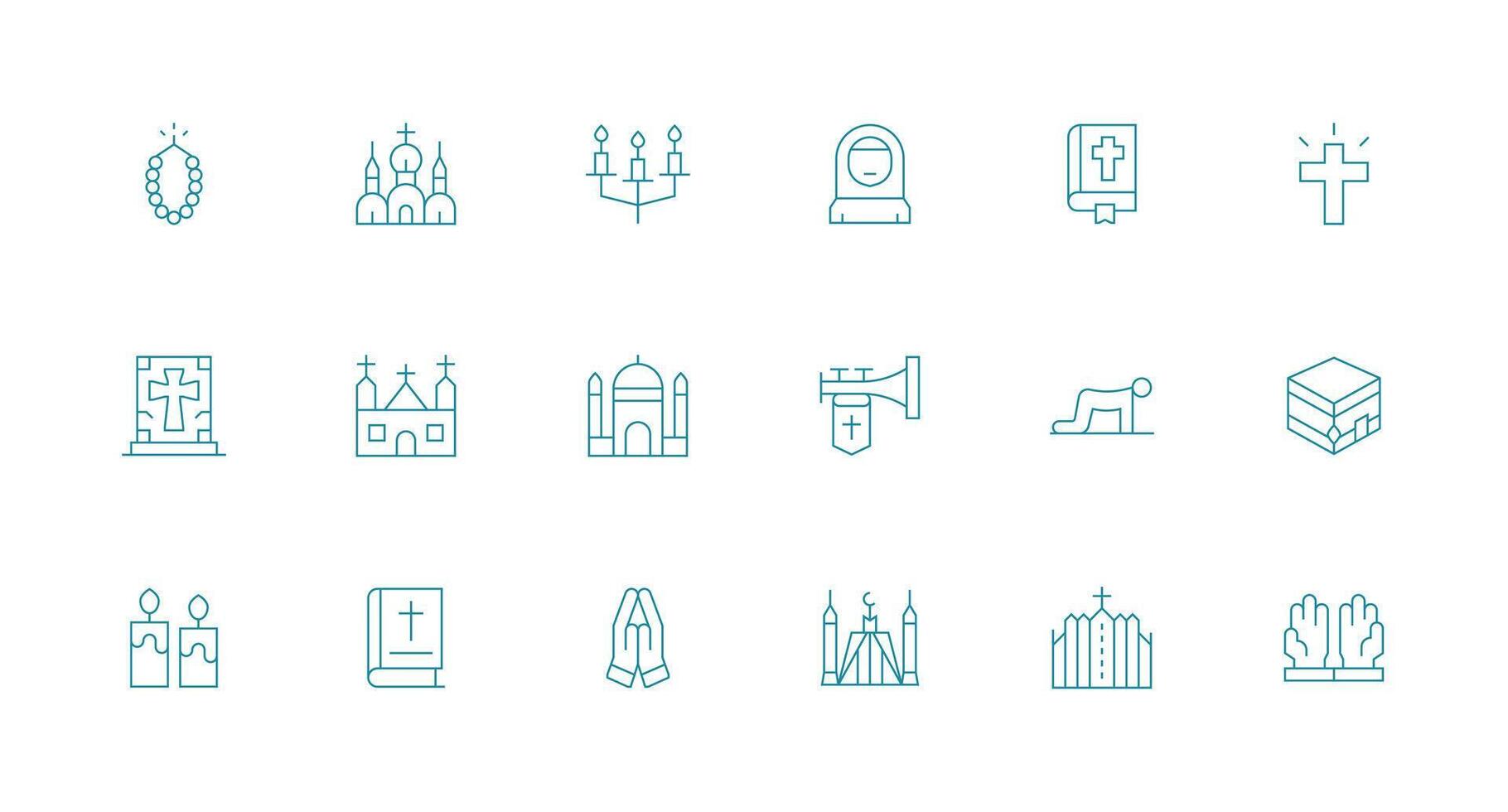 Prayer Design Icons featuring 18 in Minimal Line Style Sharp Icons for Presentations vector