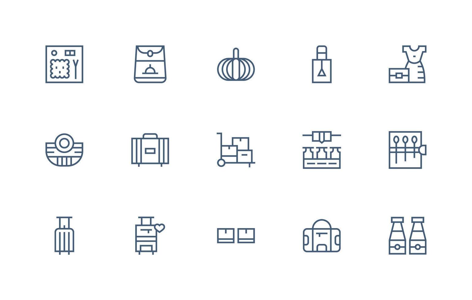 Packing Icon Set with 15 Regular Line Graphics Quick Access Icons for UI Development vector