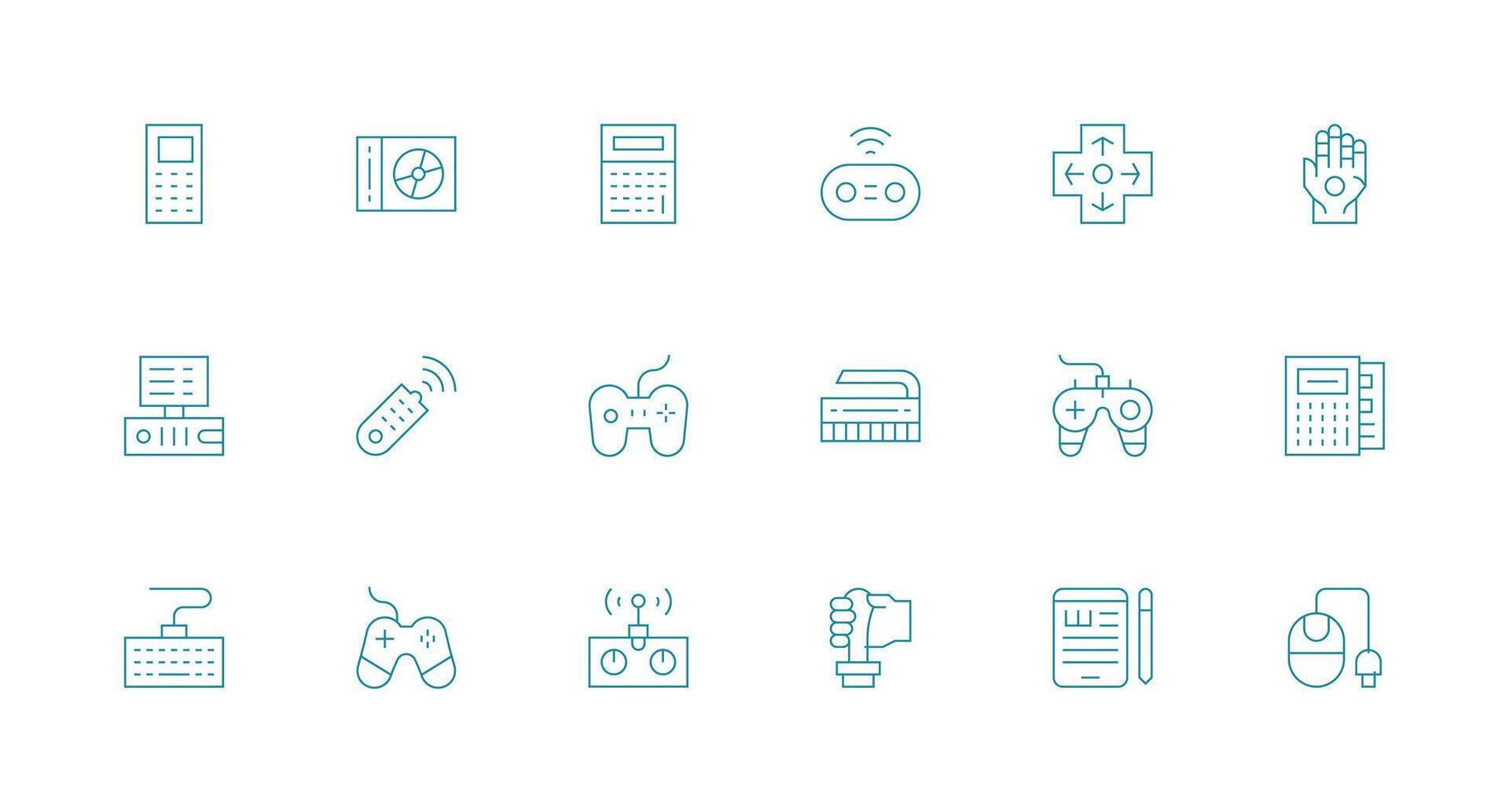 Input Device Design Icons featuring 18 in Minimal Line Style Flat Icon Set vector