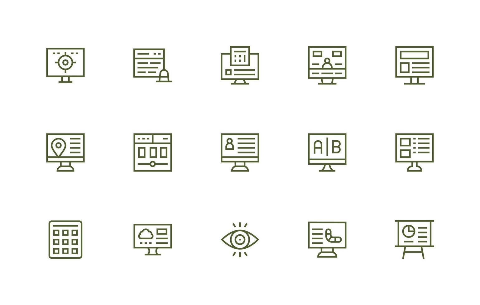 Regular Line Style Data Display Icons with 15 Vectors Icon Set for Projects