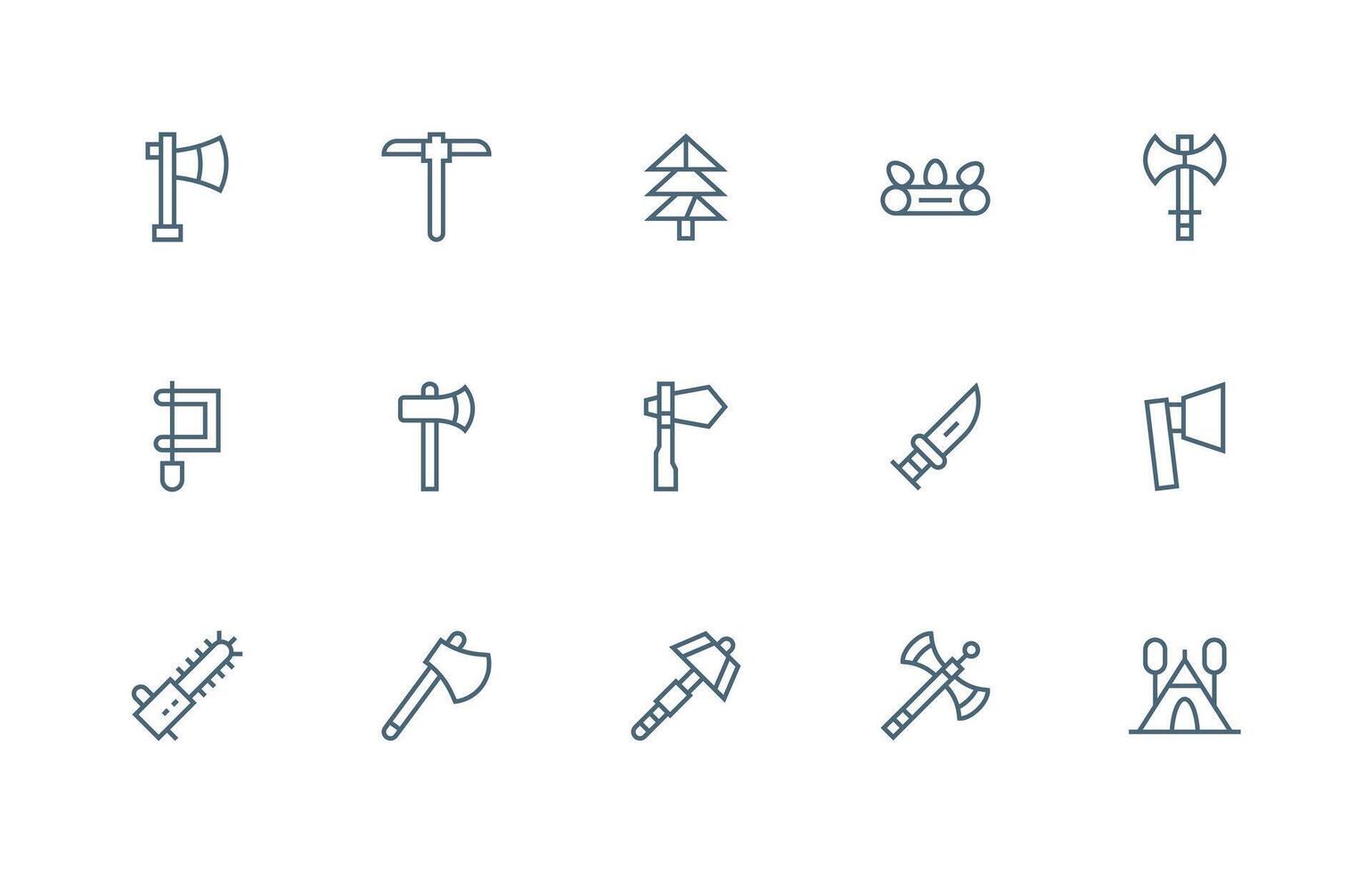 Forestry Icon Set with 15 Regular Line Graphics Interface Icon Collection Free Vector