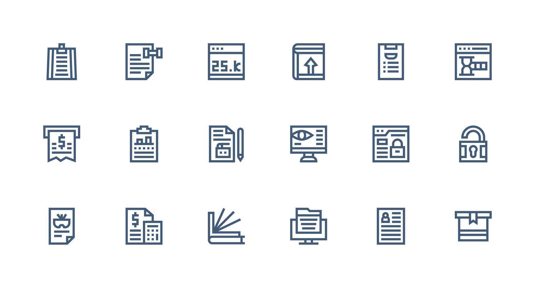 Strong Stroke Line Icons from Document Set with 18 Vectors Web Icon Collection Free Vector