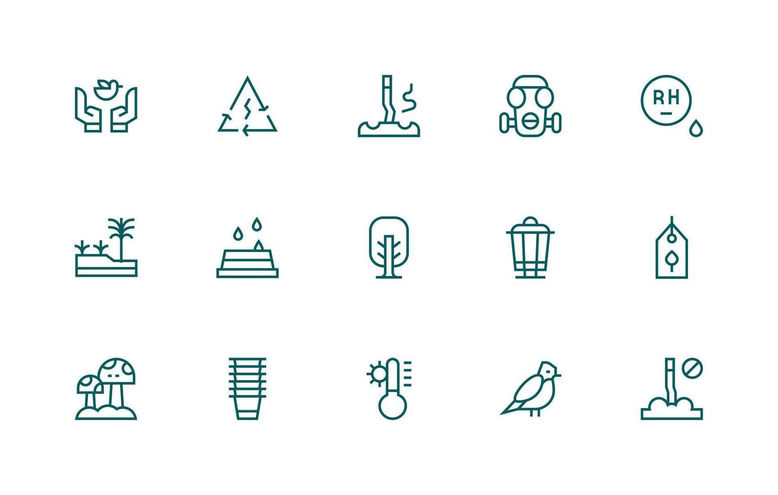 Environmental Icon Set with 15 Regular Line Graphics UI-Ready Icon Collection Free Vector
