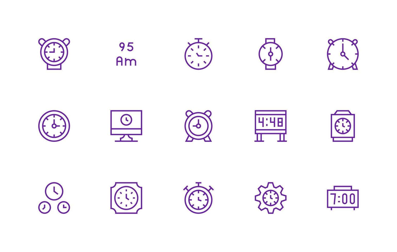 Digital Clock Set with 15 Regular Line Icons Multi-Style Icon Collection vector